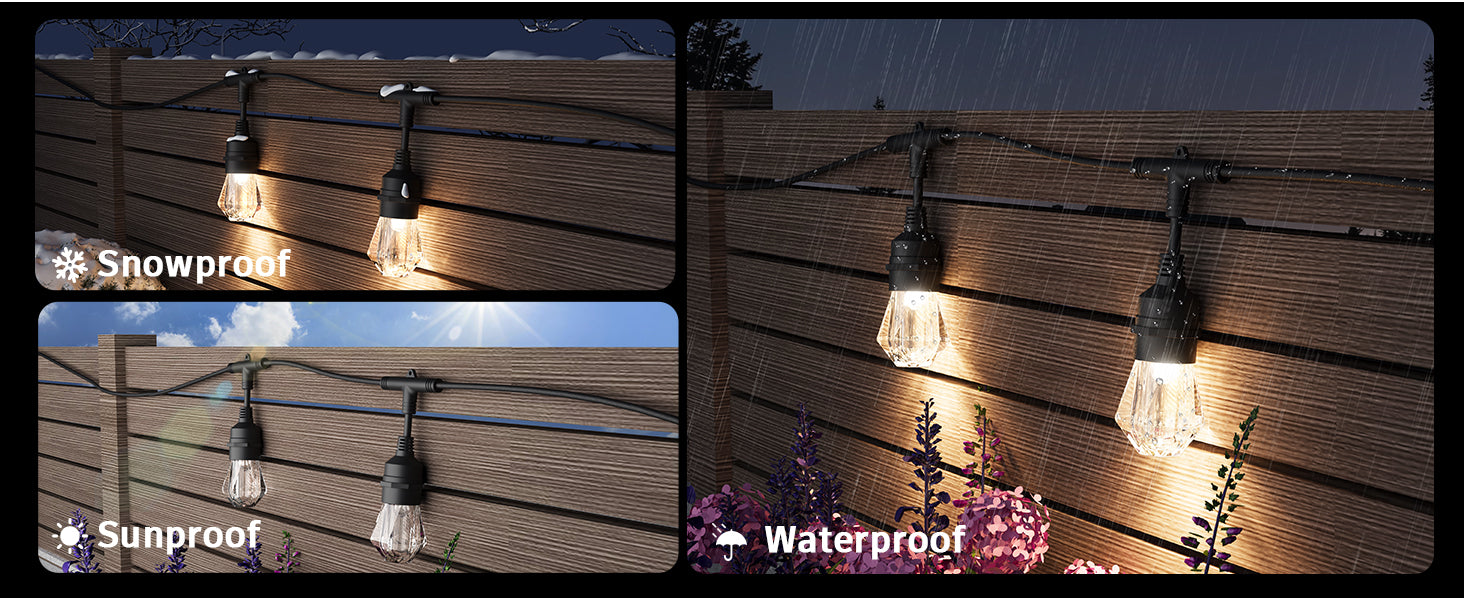- 【IP65 Waterproof & Shatterproof】The string lights are built to endure all weather with IP65 waterproofing and durable shatterproof acrylic,ensuring long-lasting performance even in tough environments.