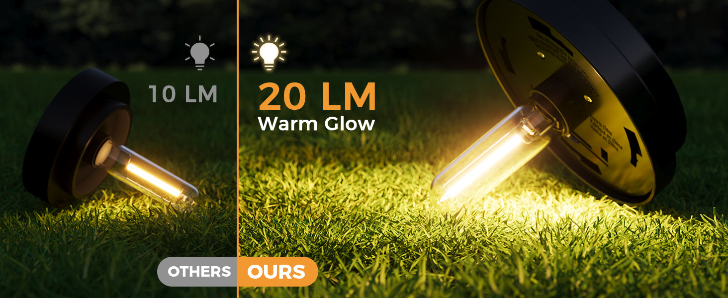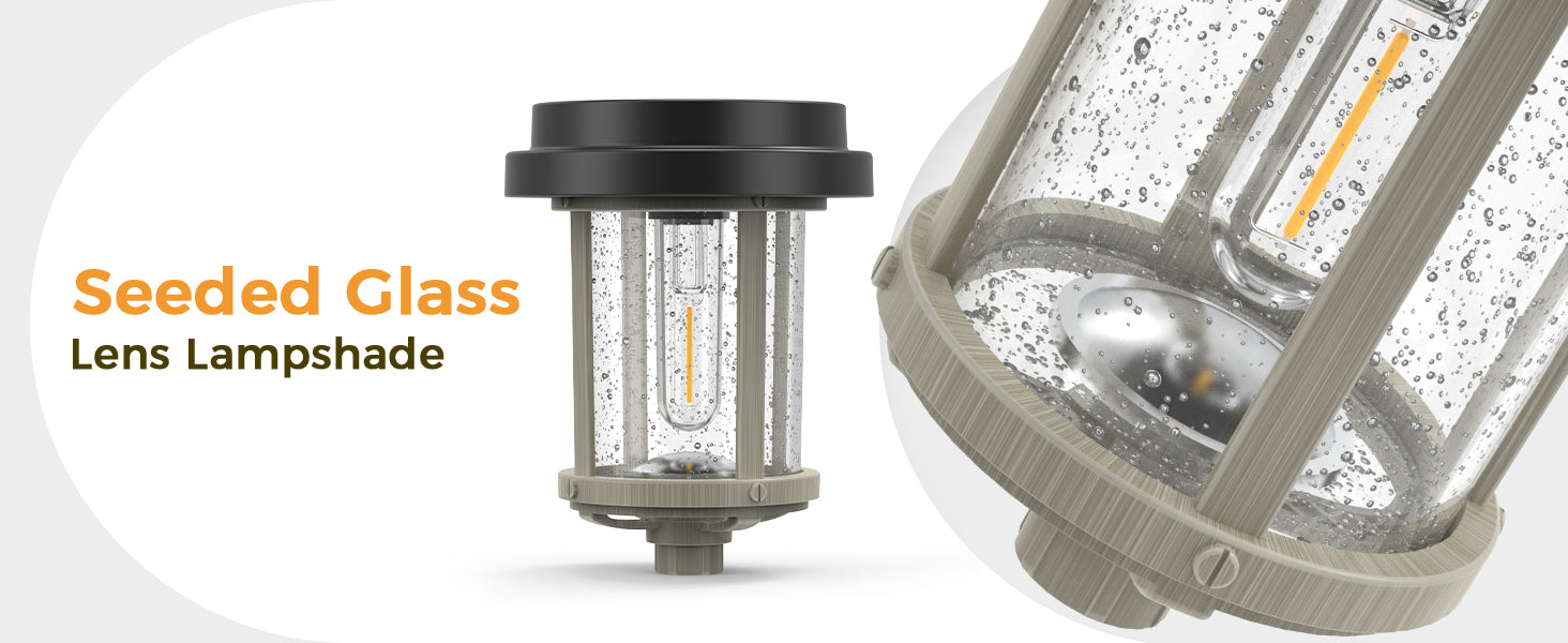 - BRIGHT SOLAR LIGHT WITH ELEGANT GLOW: Solar garden lights 20 LM warm white light with Seeded Glass Shade effectively eliminates harsh glare, adds 360° soft ambient lighting. Emits a warm ambiance through thickened bubble glass. (Dimensions: 21.7"x 5.1"x 5.1").