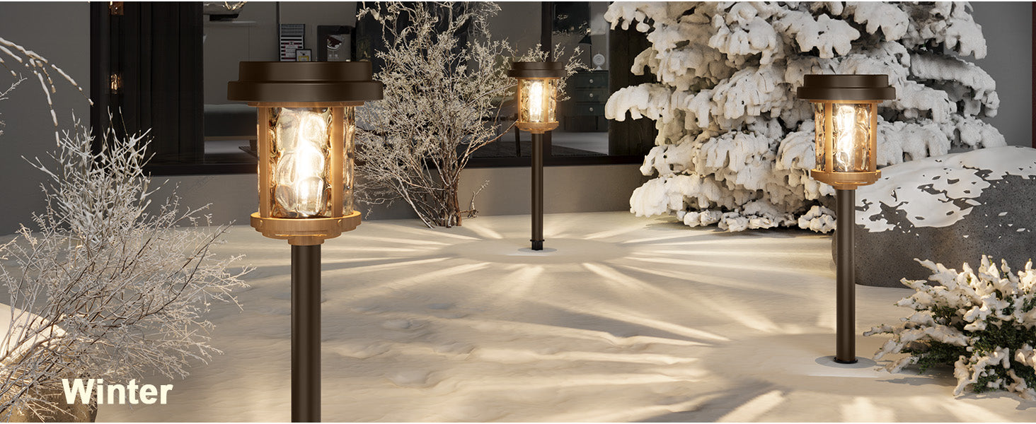 - WEATHER-RESISTANT FOR YEAR-ROUND USE: Solar powered outdoor lights made of high-strength oxidation-resistant metal with water lens thickened glass, can withstand -4°F~140 °F. IP65 waterproof grade ensures the solar landscape lights withstands extreme weather conditions.