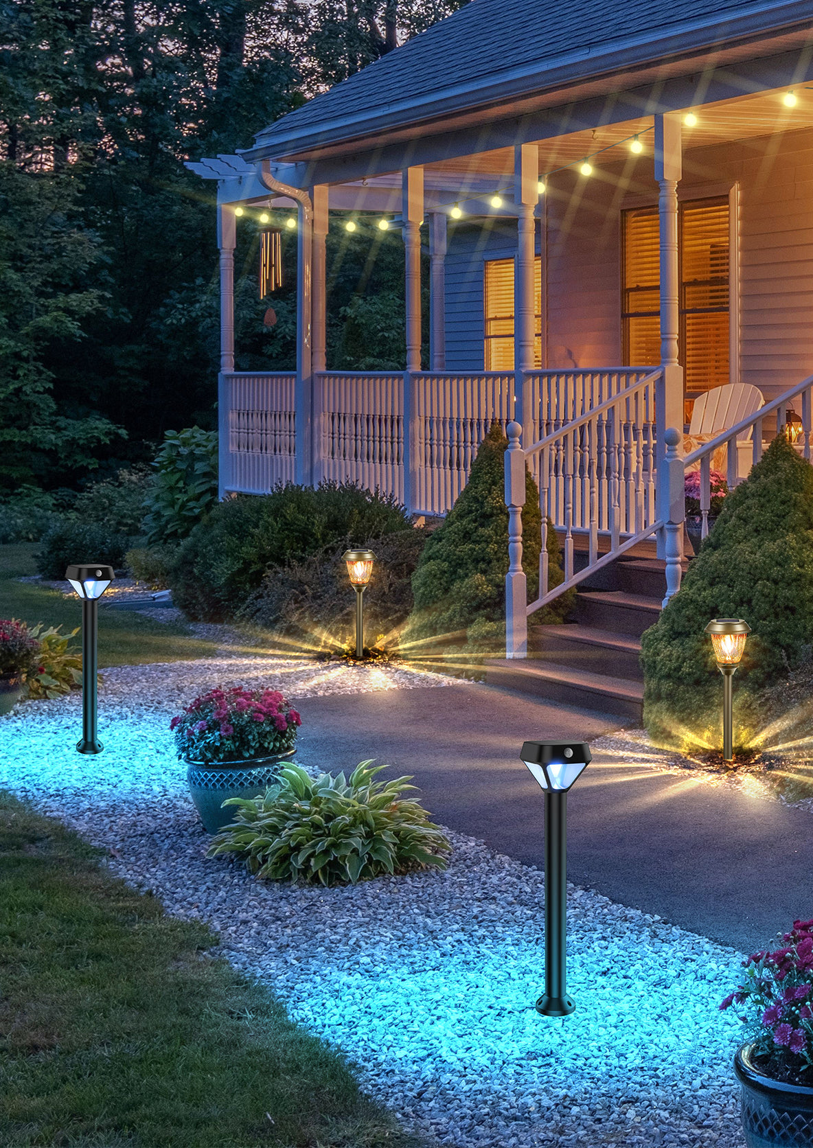 XMCOSY+ RGB &Warm White Outdoor Solar Pathway Lights- 6 Pack