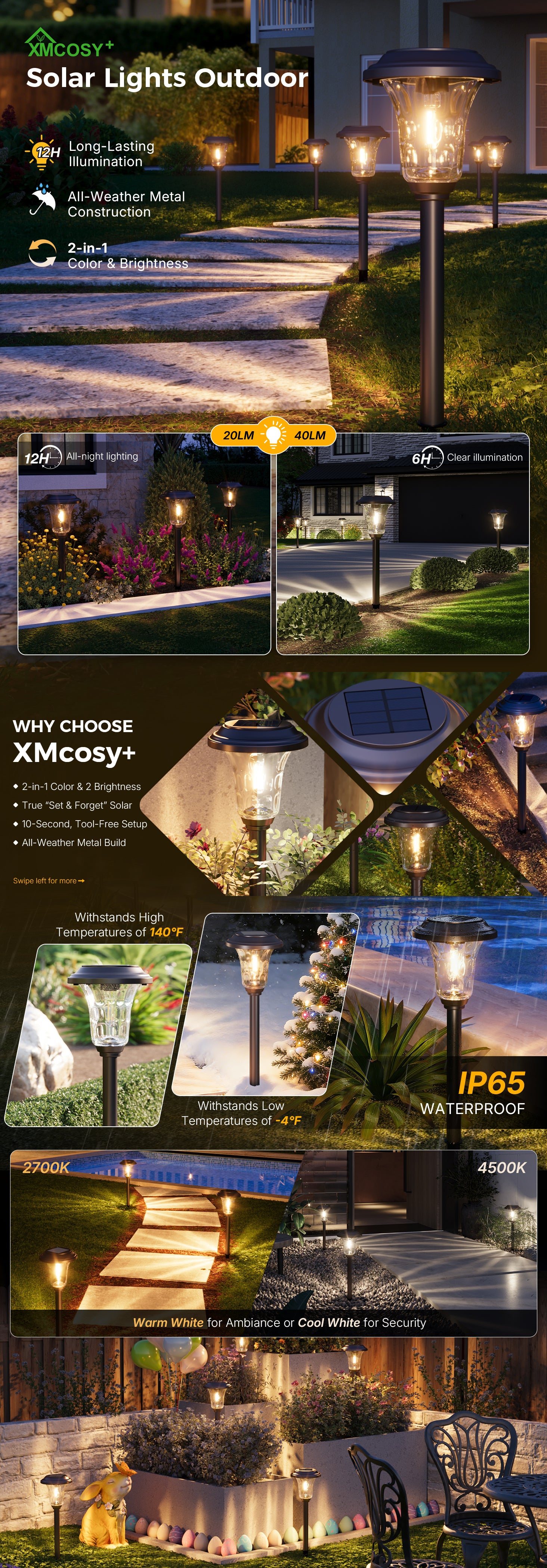 XMCOSY+ Metal Glass Solar Pathway Lights