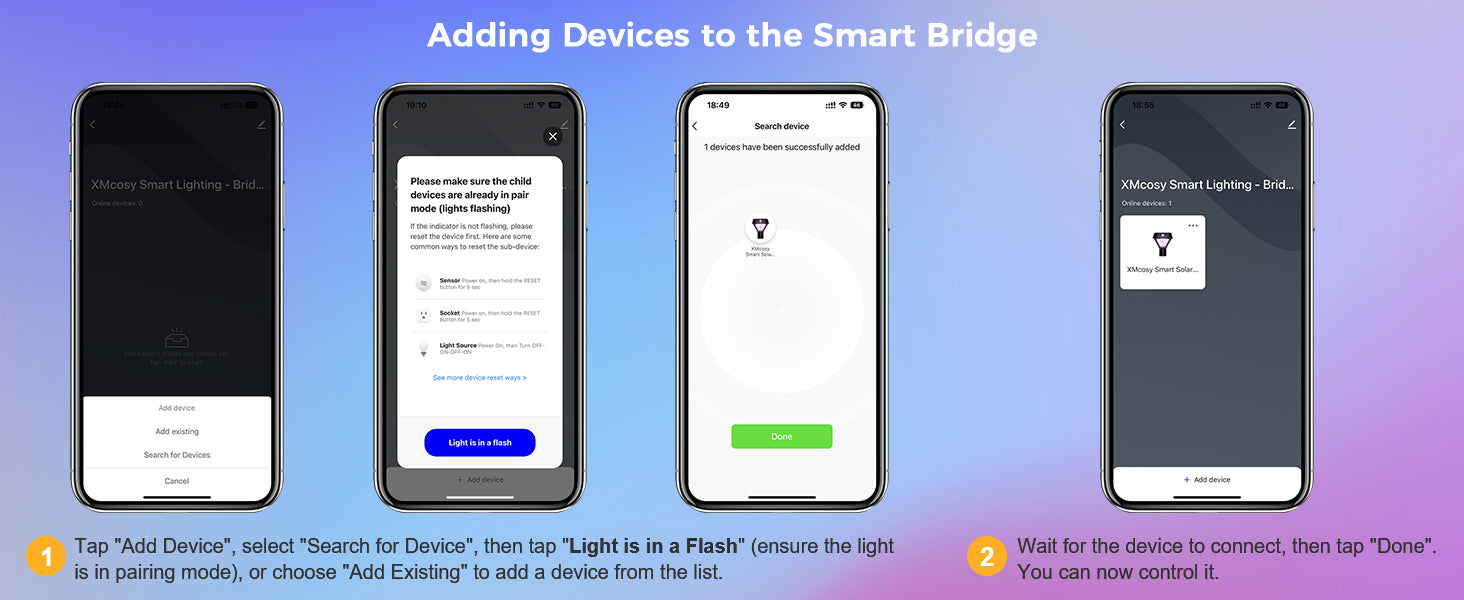 - The smart bridge is compatible with the Smart Solar Outdoor Lights with Motion Sensor but is not compatible with other XMcosy smart devices, such as the smart string lights or wall lights.
