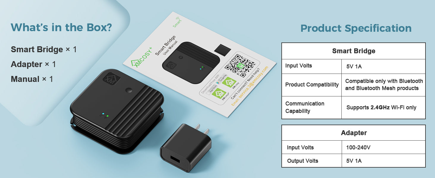 - Easy Installation: Simply use the xmcosy APP and ensure the gateway is within 15 meters of your home router. The smart bridge connects via 2.4GHz WiFi for a quick, hassle-free setup.