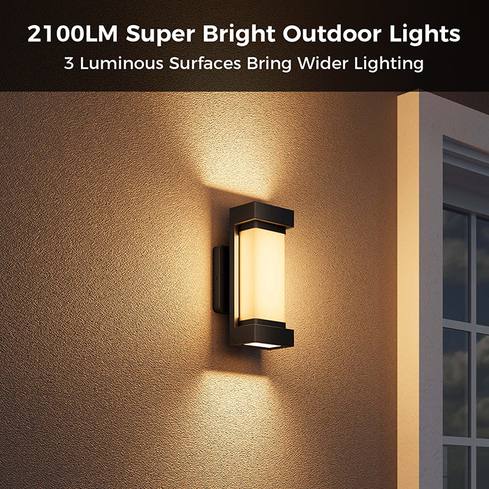 - 🔆Super Bright Wall lights: The black outdoor light fixture offers a high brightness of 2100 lumens and a wider illumination range with three emitting sides from the upper, lower, and front. The outdoor wall lights support 2200K-6500K warm white and cool white, 16 million colors, and adjustable brightness, allowing you to create various lighting effects.
