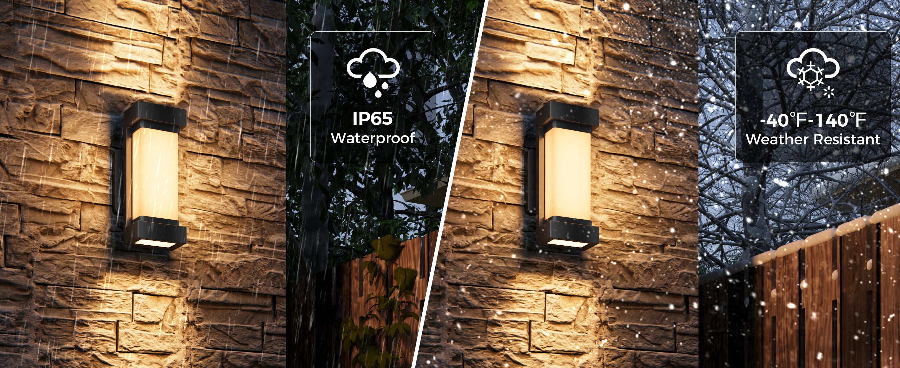 - 📱Smart Control: Control the exterior lighting fixtures through the XMcosy app. With features such as timers, schedules, plans, separate control, and group control, you can easily customize and automate your outdoor sconce lighting via just a phone. The app also offers functions like dusk to dawn mode for a smarter lighting experience. And voice supports Google Assistant and Alexa for more convenience.