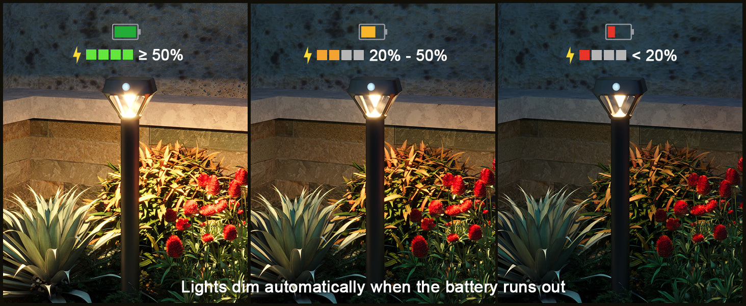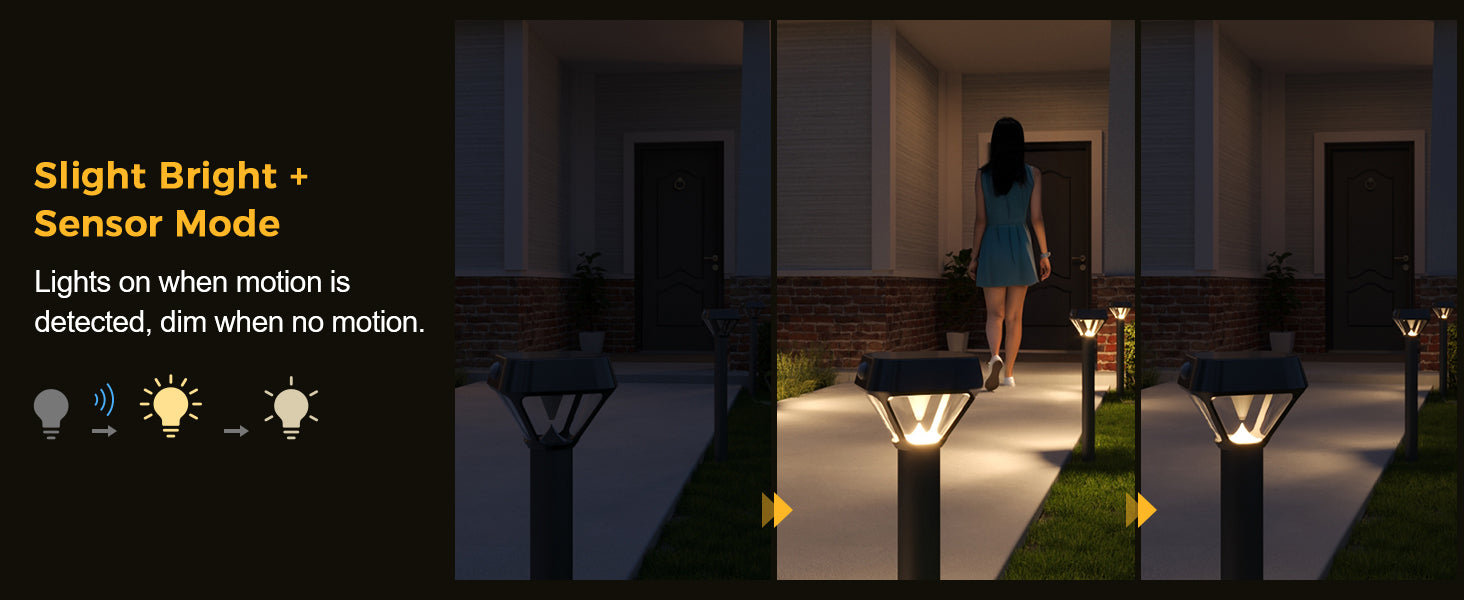 ② Sensor slight bright mode, adjustable brightness from 10% to 30% for 8 hours or keep the light state;