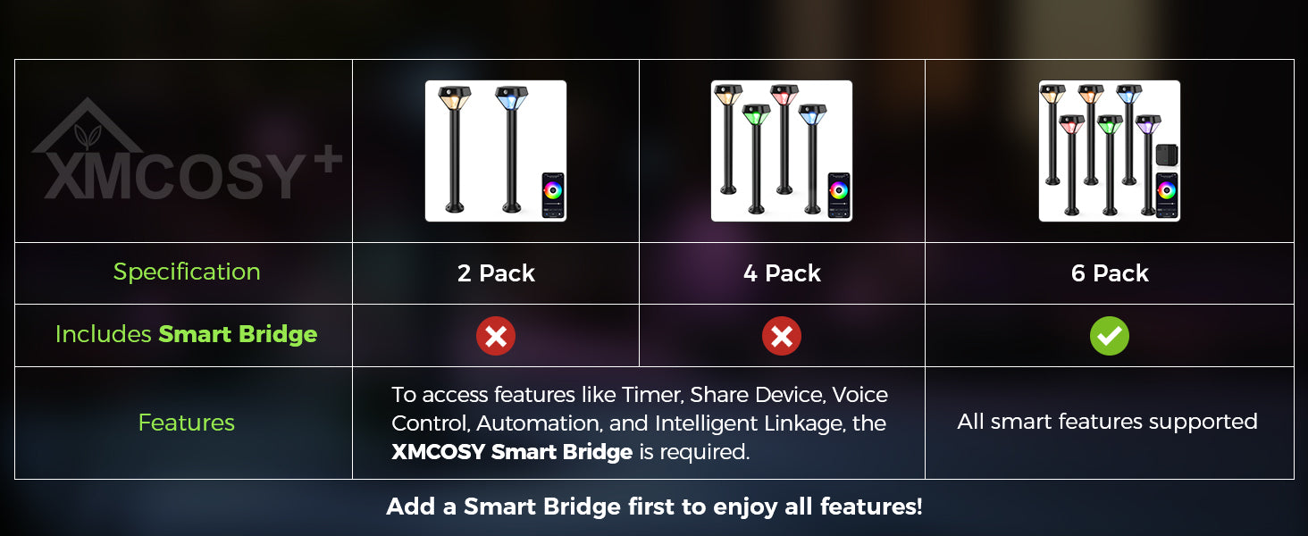 XMCOSY+ Smart Solar Motion Sensor Light - 2 packs & 4 packs (Excluding Smart Bridge)