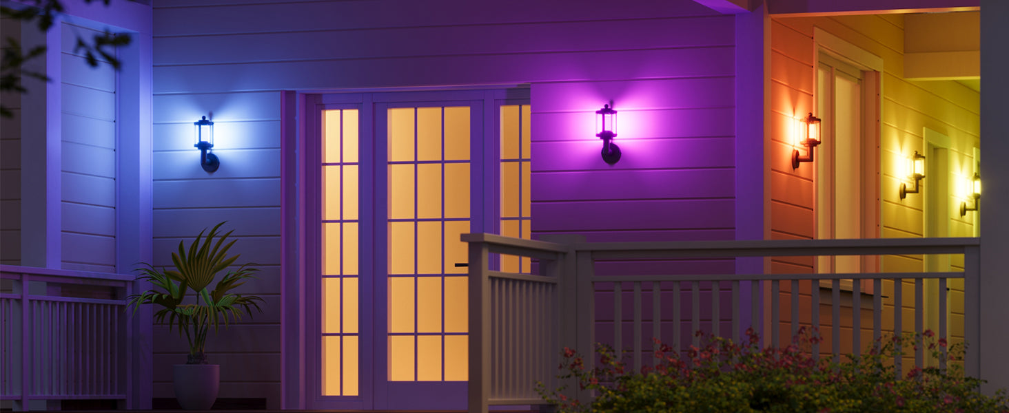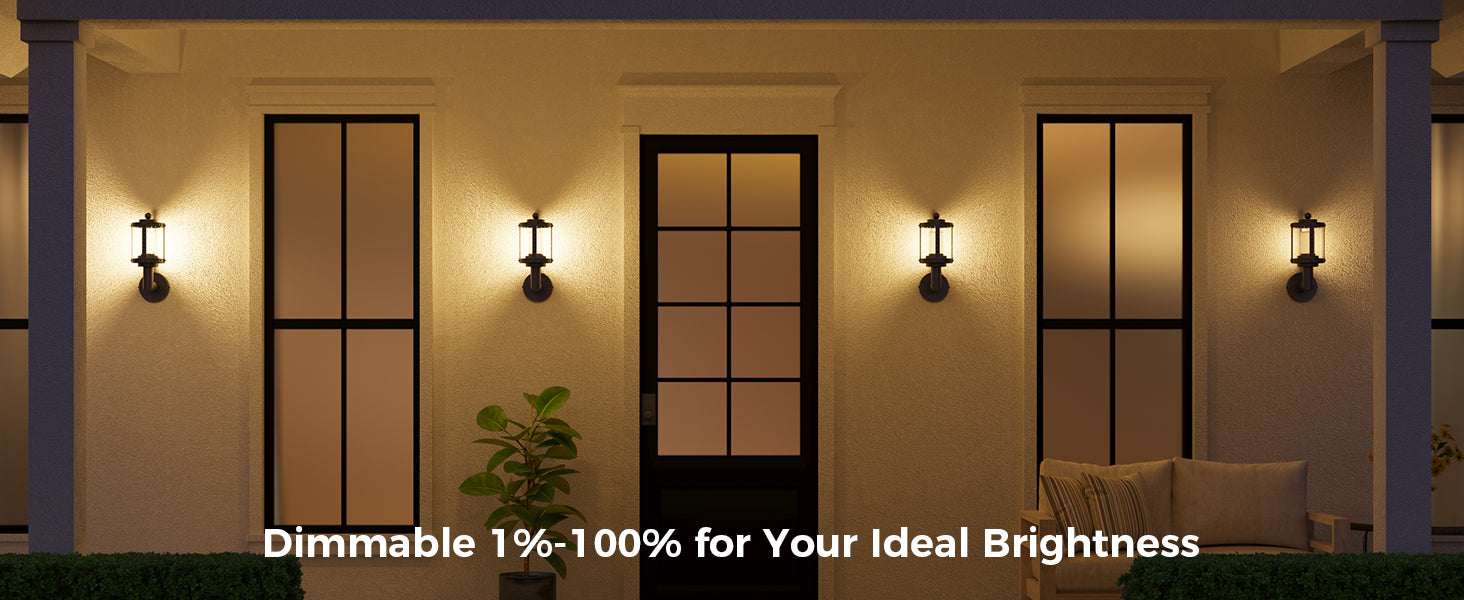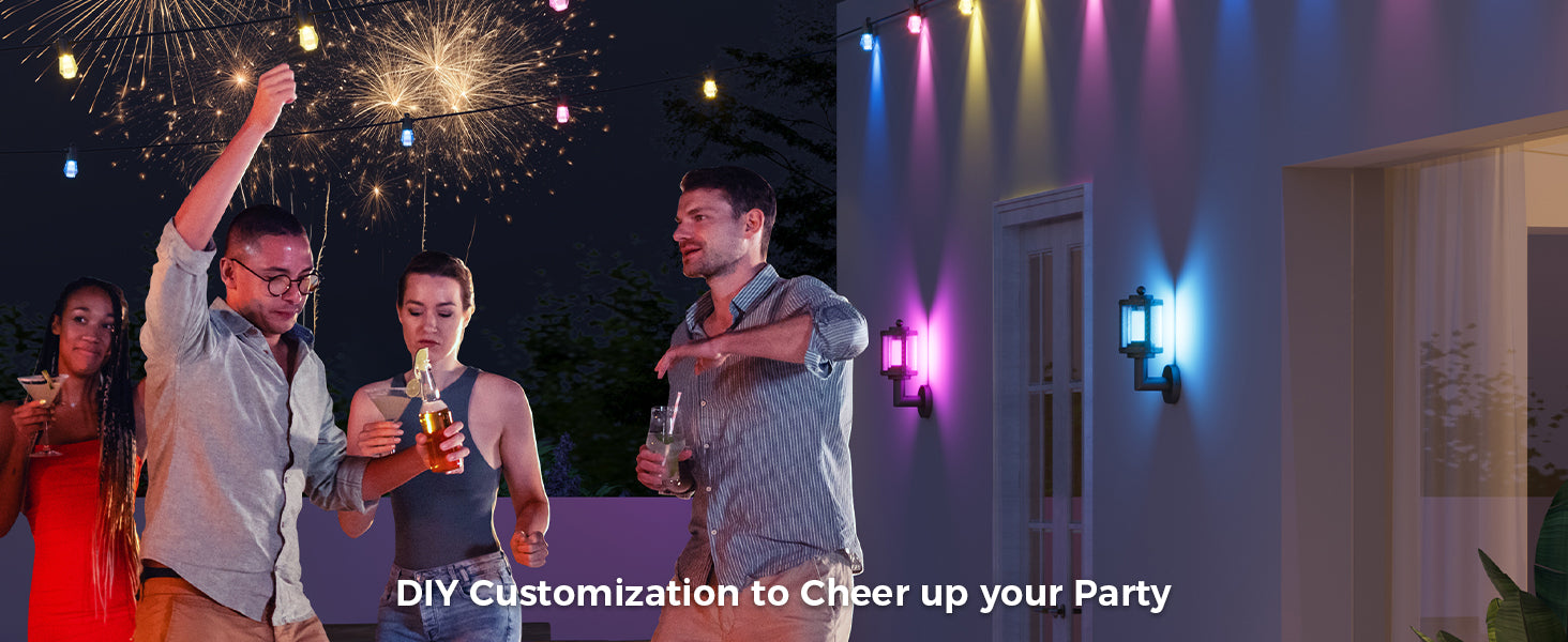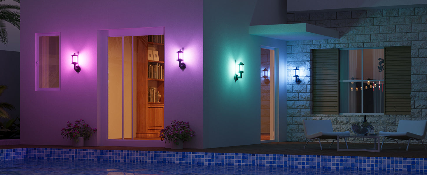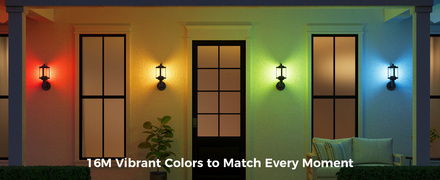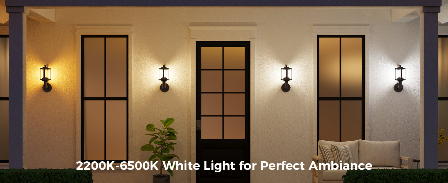 - Adjustable Lighting: This outdoor wall light offer 2200K-6500K white light, 16 million RGB colors, 32 presets, and 10 custom scenes; Sync with music to create the ideal ambiance for holidays like Halloween, Christmas, or other events